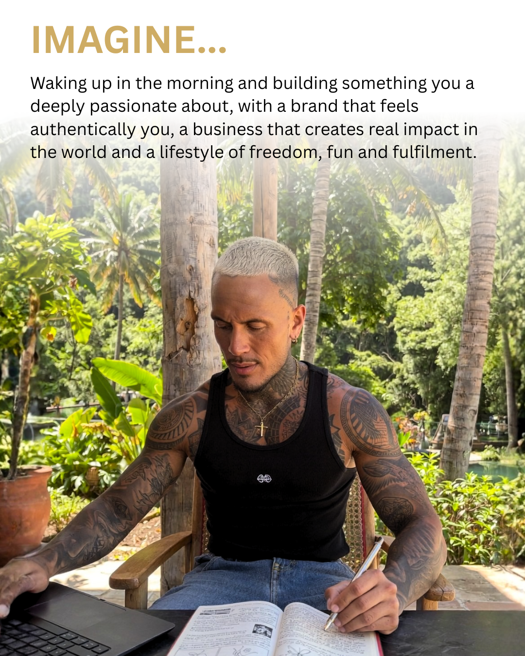 You want to build a brand that feels aligned with a purpose thats bigger than you. A business that generates real income and real impact. A life with freedom, sovereignty, and legacy, not just another version of the grind driven by hustle culture.